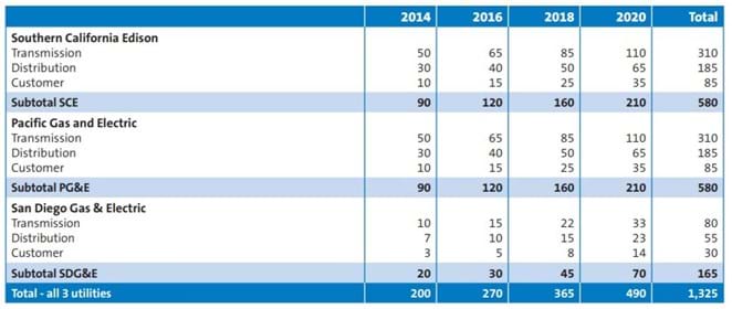 The California Public Utilities Commission is proposing to set the following electricity storage targets in megawatt amounts. Individual targets are set for each utility. Targets will have to be met starting in 2014. The targets will ramp up every two years.