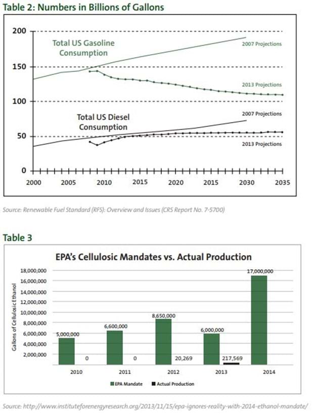 However, the proposed fuel standards for 2014 reflect the realities of the ethanol and petroleum markets. Gasoline consumption is falling. Fuel distributors are facing an ethanol “blend wall” in the sense that they have reached the limit on the amount of ethanol they can mix at a 10% blend. There are not yet much cellulosic and advanced biofuels to blend.