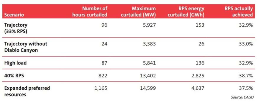 The CAISO’s curtailment forecasts for each of these scenarios are summarized in the table below.