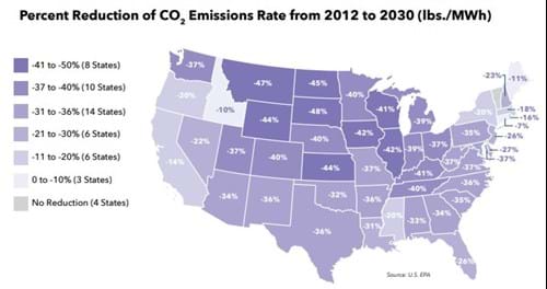 Each state has been assigned a percentage reduction in emissions. The greatest percentage reductions will be required in the upper-Midwest.