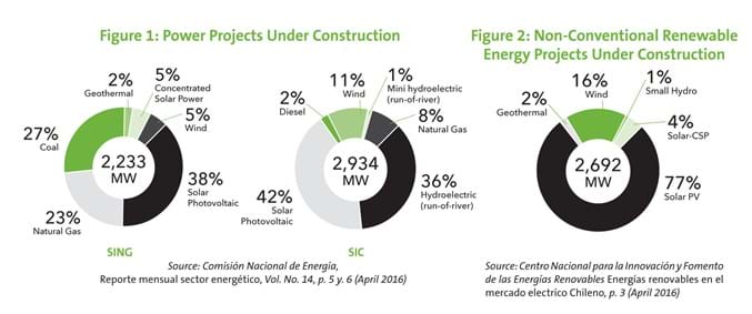 Figure 1 shows power projects under construction in SING and SIC, and Figure 2 shows renewable energy projects under construction in all parts of Chile.