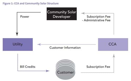 The CCA can either build, own and operate the community solar project itself or contract with a third-party developer that is registered with the state as a “DER [distributed energy resource] provider.”